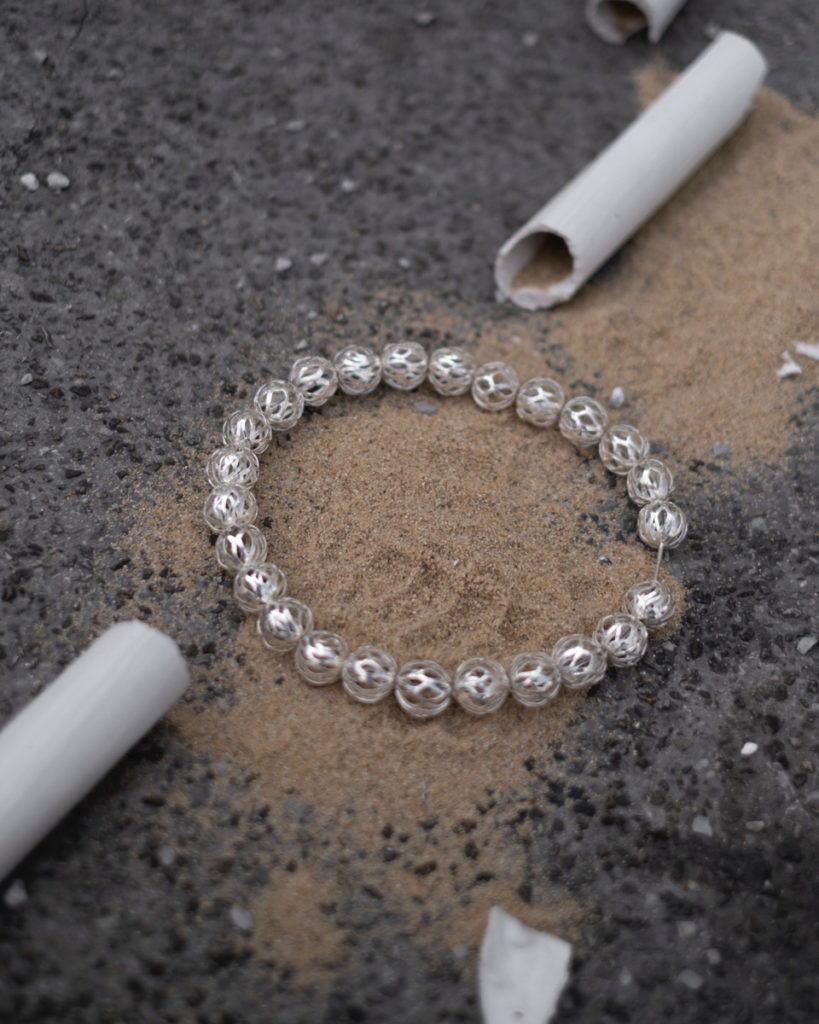 Je souhaite que mes bijoux soient des expériences narratives, intimes et parfois légèrement dérangeantes, conçues pour interroger notre rapport au monde qui nous entoure. Les bijoux me permettent précisément de ramener ces réflexions à l’échelle intime du corps, créant ainsi un lien direct avec nous-mêmes. Plus qu’une simple décoration, je les considère donc comme un support où la mémoire, le message de l’œuvre et sa valeur peuvent se porter. »