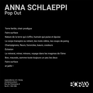 La céramique comme moyen d’expression, Anna Schlaeppi explore la matière et ses limites. Elle joue avec le geste fondamental et créateur, corps et matière dialoguent donnant naissance à ce qu’elle appelle les heureux accidents. Se laissant surprendre et guider par les formes que prend l’argile de manière fortuite. Le monde qui l’entoure et la façonne est une source d’inspiration inépuisable qui nourri sa créativité et son imaginaire.