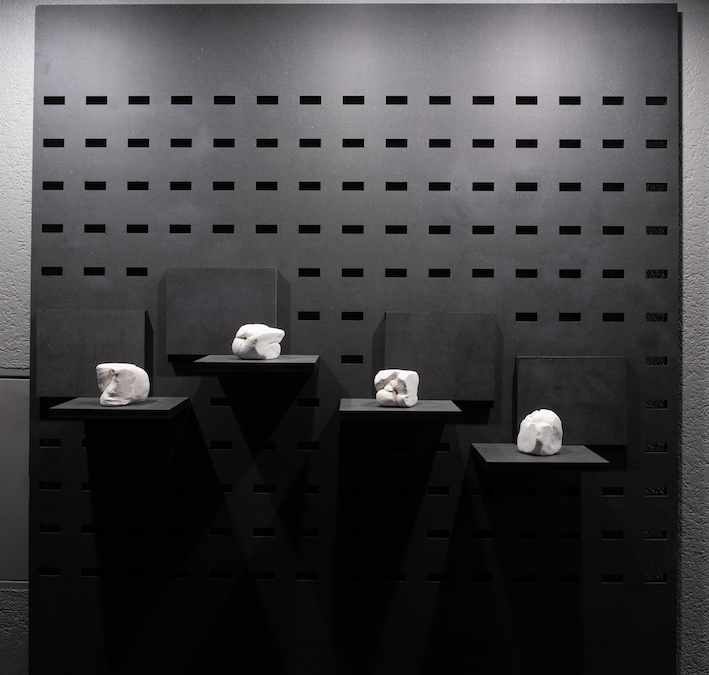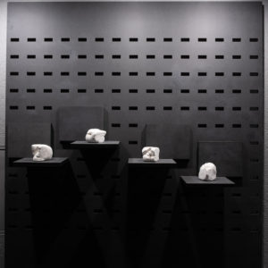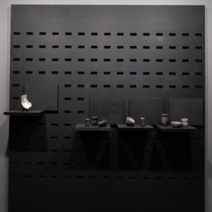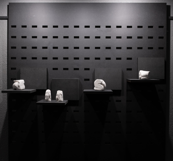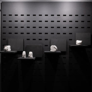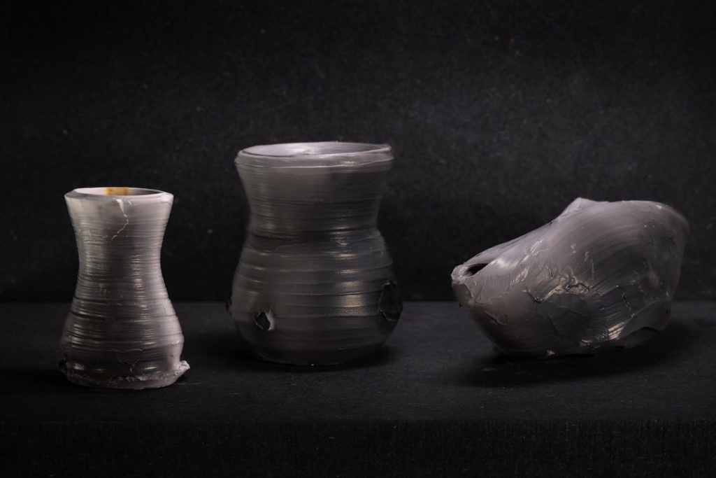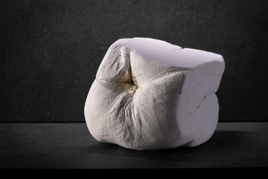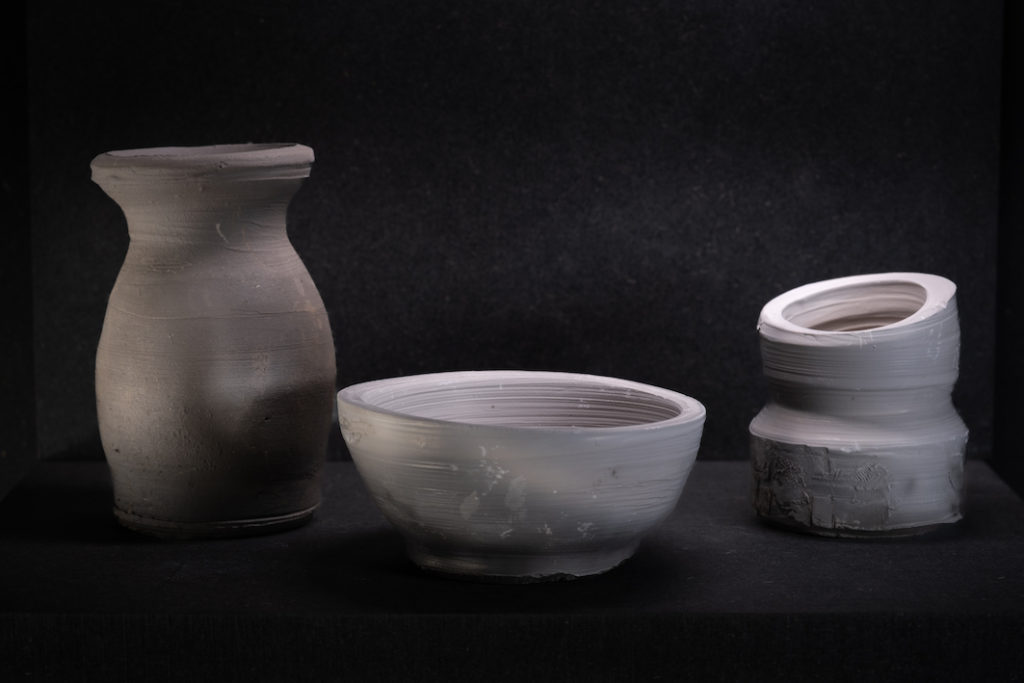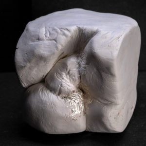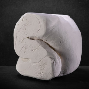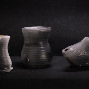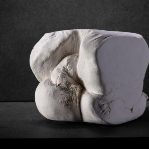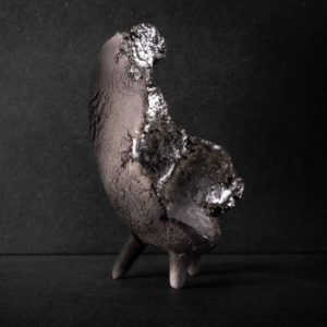Suite à une formation de céramiste au CEPV à Vevey, Zoé Genet-Berthoud navigue entre céramique, sculpture, peinture, couture et confitures. Quelques années après la naissance de ses enfants, elle prend conscience violemment, maladivement, à quel point les deux états — celui d’artiste et celui de parent — se confrontent et s’entrechoquent. Faute d’atelier, de temps et d’espace, c’est la cuisine qui devient le lieu de création. Le micro-ondes sert de four à céramique, la table à manger pour le tournage, le salon pour le modelage et le jardin pour l’enfumage. Un minuscule tour permet de façonner de petits contenants fragiles et bruts, tandis qu’un geste de ras-le-bol transforme des masses de porcelaine thixotrope en morceaux de chair.